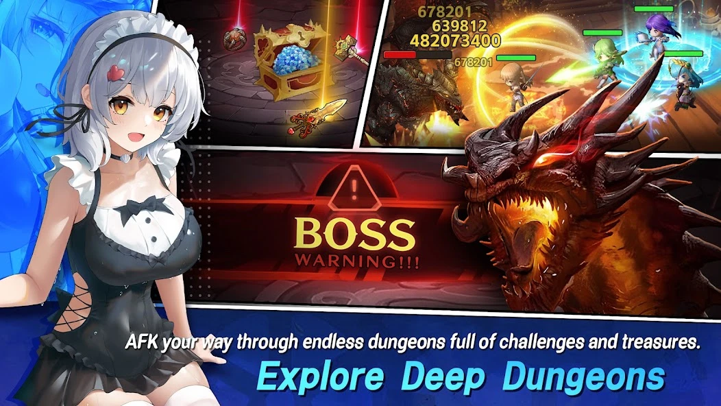 Всего в игре доступно более 100 уникальных персонажей с разными классами и стилями. Обещают динамическую анимацию с откровенными нарядами и японской озвучкой. Что касается геймплея, то герои сами исследуют подземелья, сражаются с боссами и собирают материалы прокачки пока вы оффлайн.
