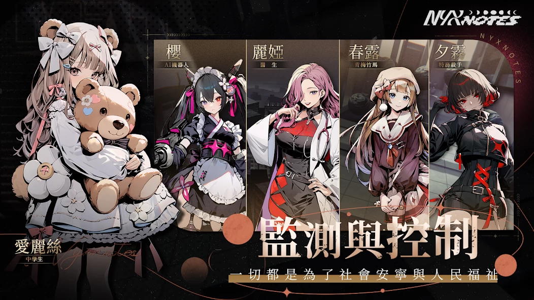 Игроки Nyx Notes выступят в роли командира отряда аниме-девушек. Они автоматически сражаются с волнами врагов, пытаясь уничтожить их всех за отведённое время. Всего в свою команду можно взять около 4 героев, а постоянно сидеть без дела не получится — когда у персонажей накапливается энергия ультимейта, использовать его и выбирать область применения нужно вручную.