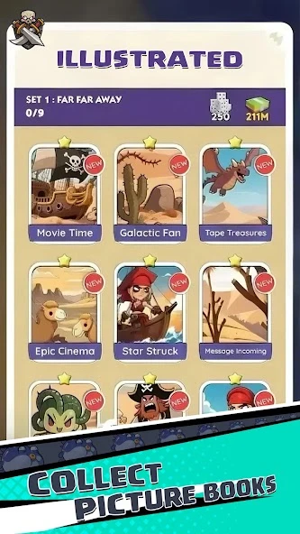 По мере прокачки вы открываете новые скиллы. Если выбить один и тот же, то получите улучшенную версию версию. По ходу приключений ваш альбом будет заполняться новыми артами. Если собрать целый набор, то можно получить валюту в качестве награды.
