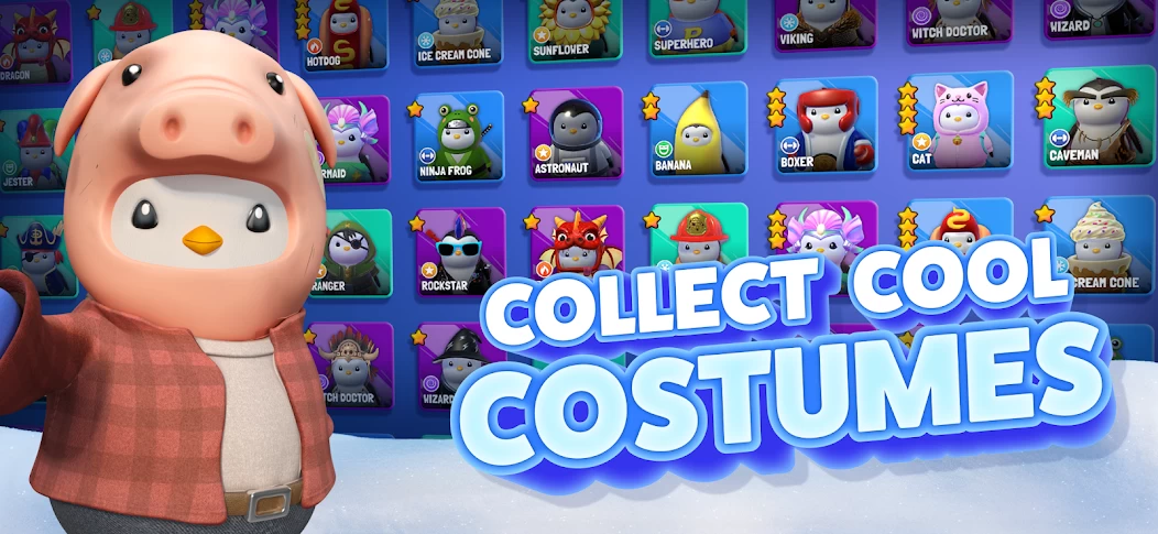 По геймплею Pudgy Party: Battle Royale представляет собой копию Fall Guys, только на этот раз по полосам препятствий бегают пингвины. Чтобы выделяться из толпы, вы можете выбивать и покупать для них смешные костюмы. Также многие локации выполнены в зимнем стиле. Вам предстоит уклоняться от вращающихся молотов, прыгать по скользким платформам и перехитрить соперников. В каждом матче участвуют до 20 игроков. Но только один пройдёт все испытания и станет победителем.