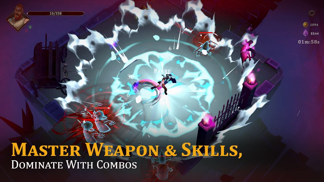 В ней вы сражаетесь за мужчину-воина на небольших аренах, получая рандомное оружие с пассивными усилениями и отбиваясь от волн врагов. Среди них будут проклятые гончие, скелеты и напольные ловушки с копьями. Всё в этой игре призвано убить вас, поэтому не удивляйтесь, если в первый заход персонаж умрёт за минуту.