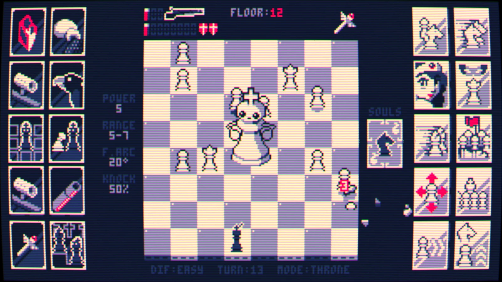 На этой странице собрана вся доступная нам информация о Shotgun King: The Final Checkmate. Выход игры PC состоялся 12 мая 2022. Игру можно отнести к таким жанрам как: одиночные игры, стратегии, пошаговые игры, минималистичные игры. Также на этой странице вы найдете описание Shotgun King: The Final Checkmate, даты выхода на все платформы, её трейлеры, отзывы пользователей, последние новости, статьи и обзоры, оценки посетителей и редакции.