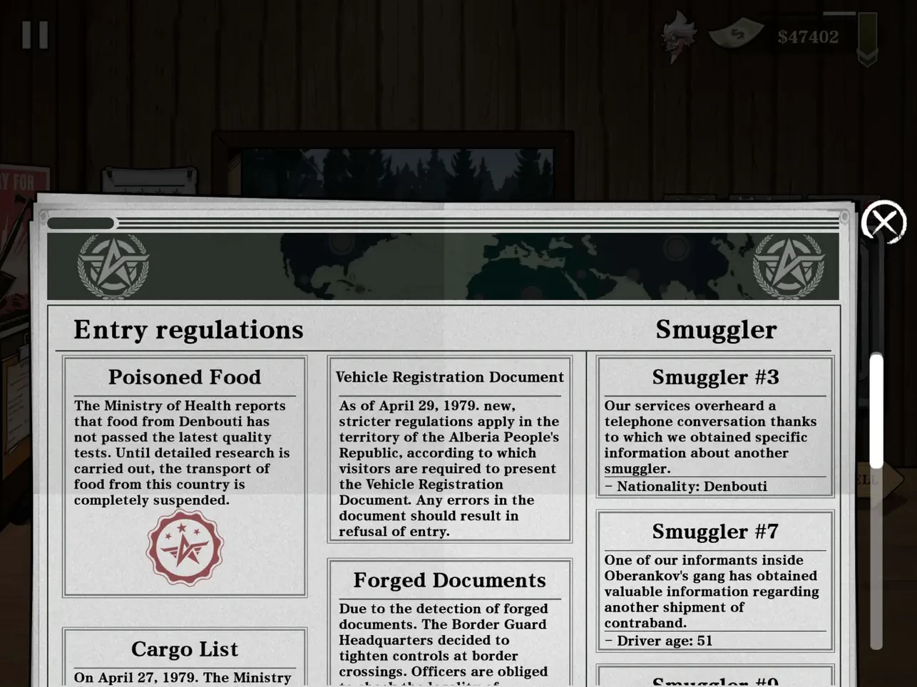 Street Patrol Command предложит типичный для подобных игр геймплей: разговариваете с проезжающими через границу, проверяете их документы, досматриваете груз и решаете — пропустить их или нет. Всё это производится в 2D-формате. С каждым днём правила проезда и таможни будут ужесточаться, поэтому не забывайте читать газету в начале смены.