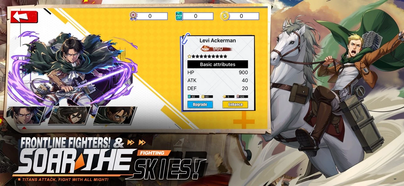 Игроки Titan Regiment выступают в роли новобранцев. Их задача — собирать отряд из героев аниме «Атака на титанов» и участвовать в AFK и пошаговых битвах. За каждый чих система выдаёт награды, чтобы вы быстрее прокачали свой отряд и продвинулись по сюжету и геймплею.