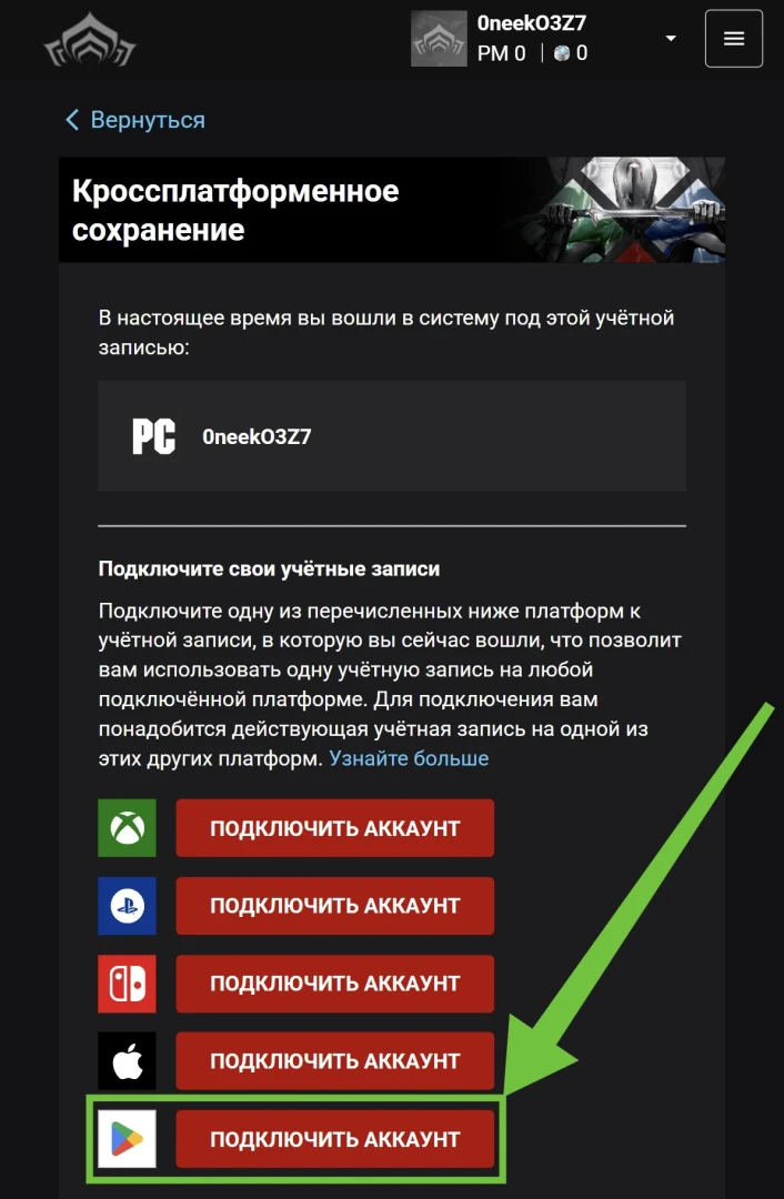 Перед началом связывания аккаунтов: вам необходимо авторизоваться в мобильной версии под вашим аккаунтом гугл, который мы в дальнейшем будем связывать с основным аккаунтом игры. Пройти в мобильной версии создание персонажа и пару первых миссий. Если не сделать это, в любом случае сайт игры оповестит вас о необходимости этого действия перед связыванием аккаунтов:)