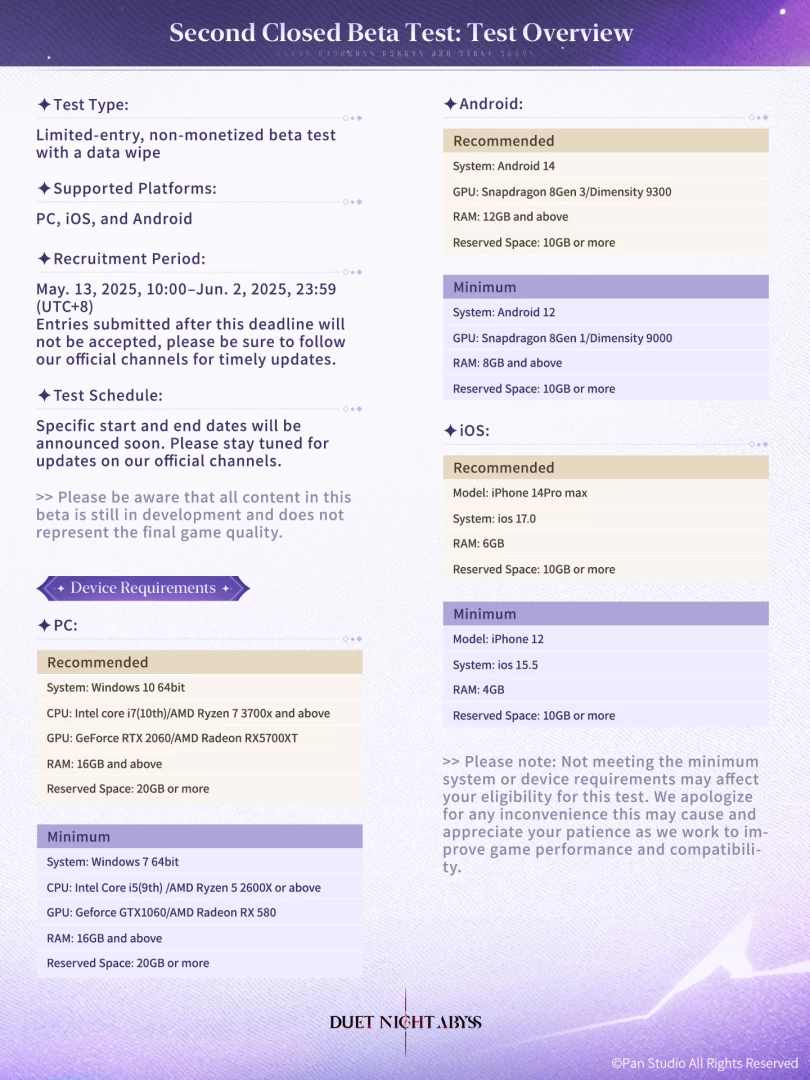 Системные требования Duet Night Abyss для 2-го ЗБТ