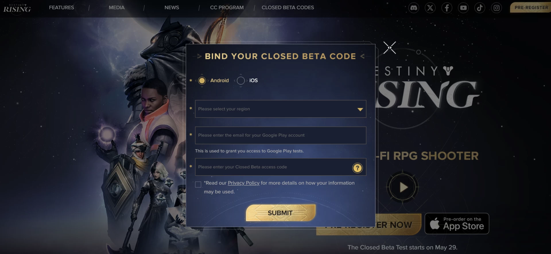Как привязать код ЗБТ Destiny Rising к своему аккаунту?