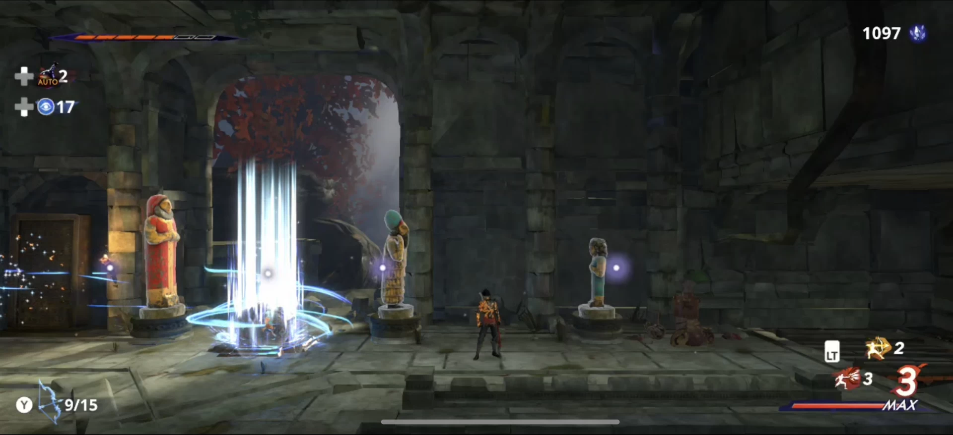 В Prince of Persia: The Lost Crown есть головоломка с 3 статуями. Красную (самую большую) можно найти на этаже выше, а среднюю — этажом ниже. Вы можете ставить их на постамент и снимать с него с помощью способности перемещения в другое измерение.