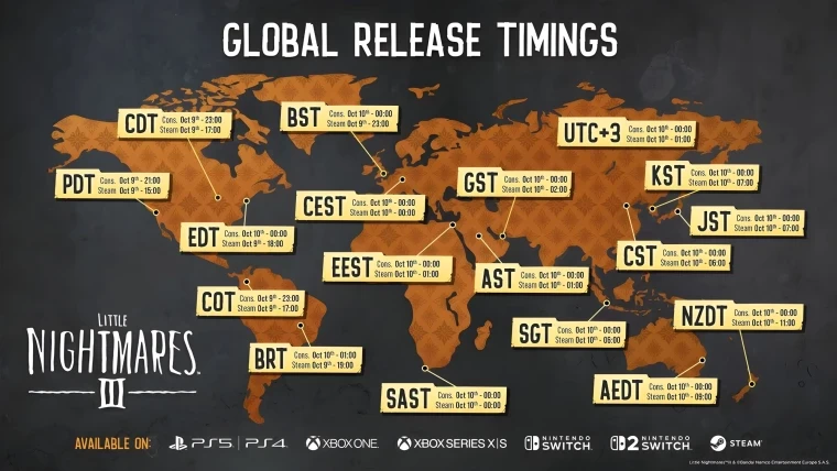 Скачать и начать играть в Little Nightmares III можно будет 10 октября в 01:00 по мск на ПК. Что касается консольной версии, то она станет доступна в полночь с 9 на 10 октября.