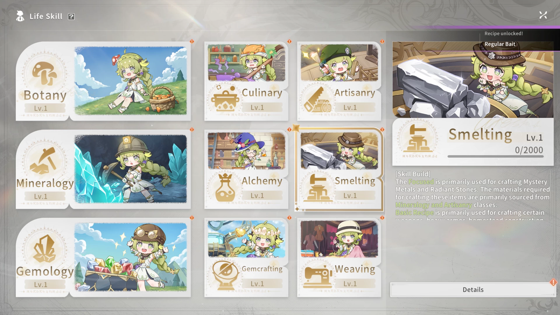 Все профессии в Blue Protocol: Star Resonance откроются после того, как вы выполните короткий квест «Life Skills». Его нужно сдать NPC Valeria в большом городе. Также важно к этому моменту достичь 17-го уровня персонажа. Вы можете свободно разблокировать все профессии, а не выбирать только несколько из них.