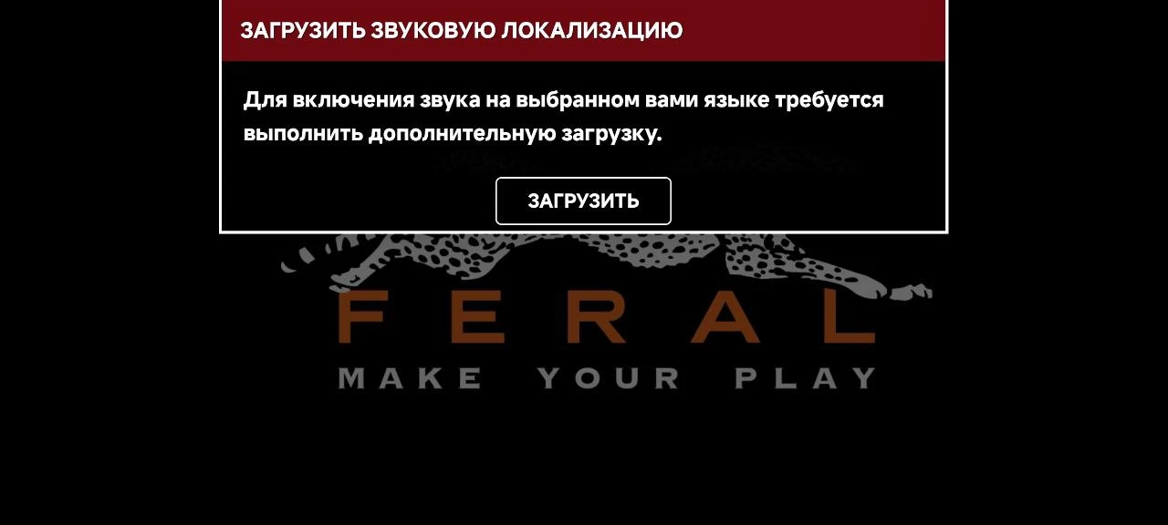 Поиграть с русским языком не получится. На одном сайте есть пошаговая инструкция с очень сложным процессом, но в итоге вы не сможете пройти дальше экрана с лого Feral Interactive.