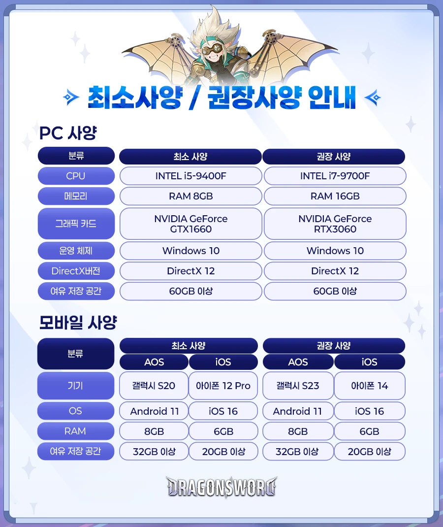 Системные требования Dragon Sword для iOS, Android и PC