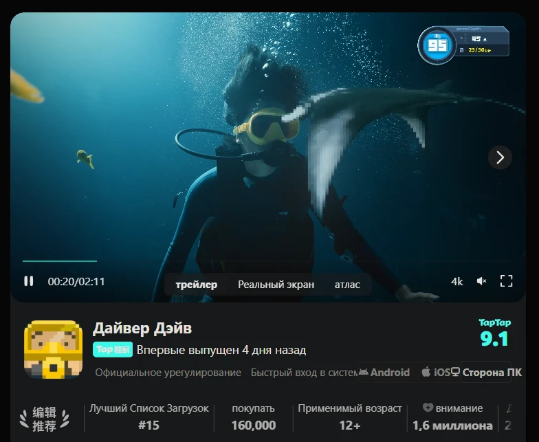 «Мобилка» Dave the Diver заняла топ-15 в китайском TapTap на релизе