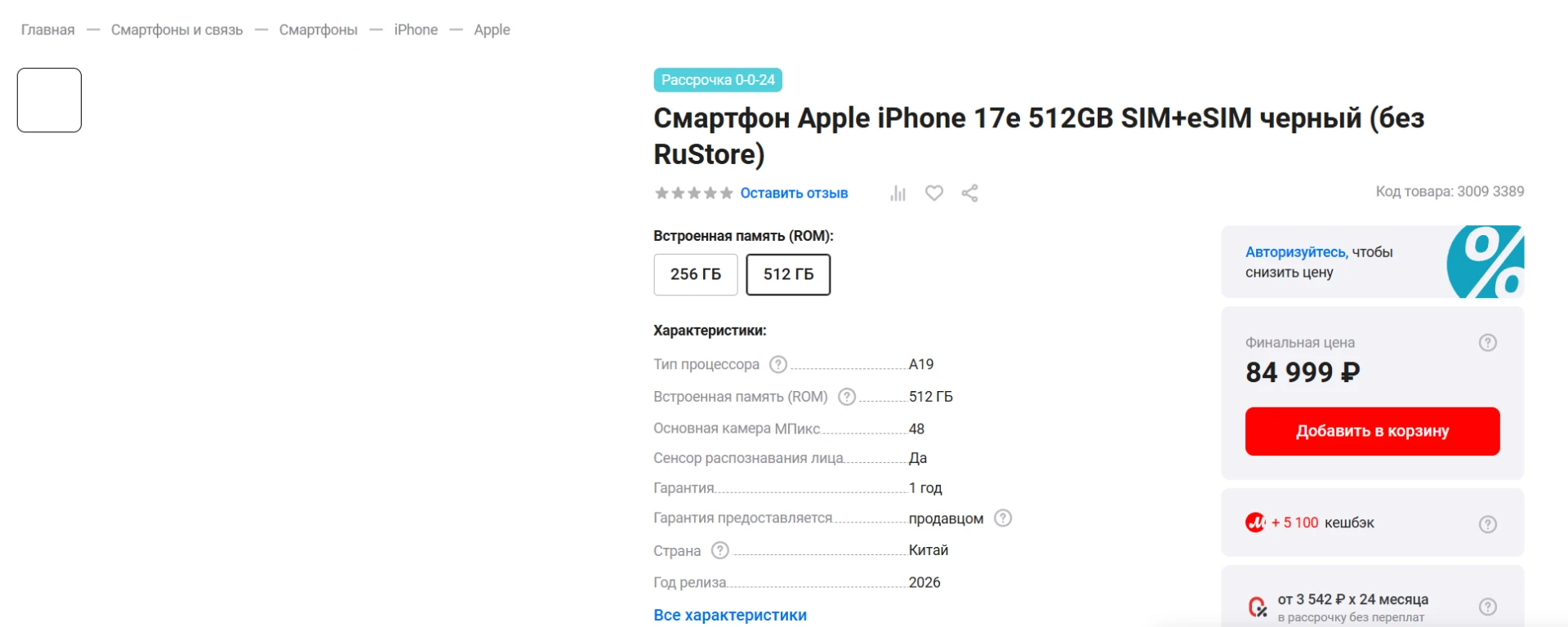 Также на сайте М.Видео указывается, что в iPhone 17e нельзя установить RuStore. За гарантию отвечает продавец. Если выбрать самовывоз или доставку, то первые покупатели получат свои Айфоны 15 апреля.