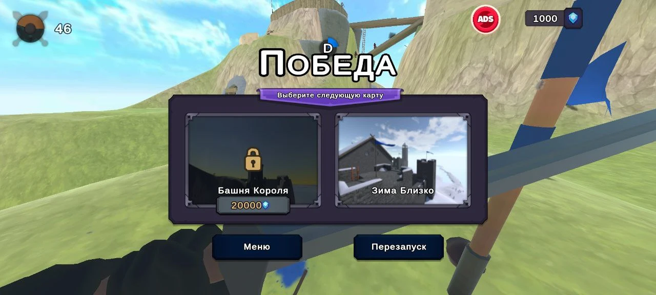 В «Война рыцарей: Битва арены мечей» есть ненавязчивая реклама во время возрождения и сменой карт. Отключить её можно за 199 рублей, что я рекомендую сделать тем, кто решит остаться в ней дольше, чем 5 минут.