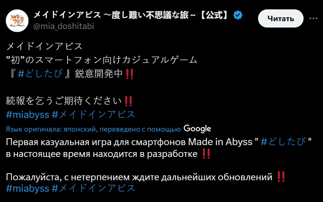 Казуальная игра Made in Abyss: A Difficult and Mysterious Journey находится в разработке. Её выпустят в Японии.
