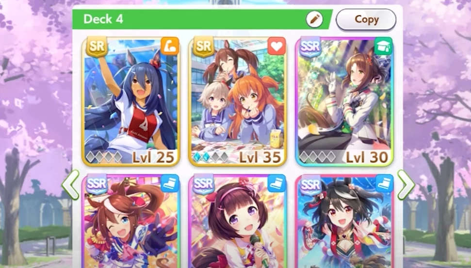 Среди карточек поддержки выбирайте 3 на скорость, 1 на выносливость, 1 на силу и 1 на ум. Если нужно, карту на ум можно поменять на силу.