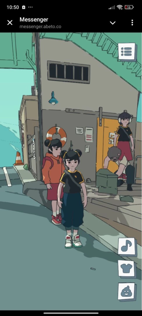 Messenger — бесплатная браузерная игра, в которой вы выполняете роль японского почтальона-подростка. Вместо того, чтобы быстро выполнять задания и зарабатывать очки, игровой процесс расслабляет вас: бегайте по необычному и круглому городу, общайтесь с NPC, выполняйте их поручения по доставке писем и еды, а также взаимодействует с другими игроками. Они внезапно появляются в вашем мире и также бегают по своим делам. Вы можете общаться с ними с помощью 3D-эмодзи, появляющихся над вашей головой. Помимо доставки можно «паркурить» по балконам и лестницам. Также игра поддерживает смену одежды: можно выбрать другую форму, цвет или нацепить «ковидную маску». Каких-то кооперативных активностей или голосового чата нет. По общему настроению и некоторым элементам геймплея игра напоминает Sky: Children of the Light.