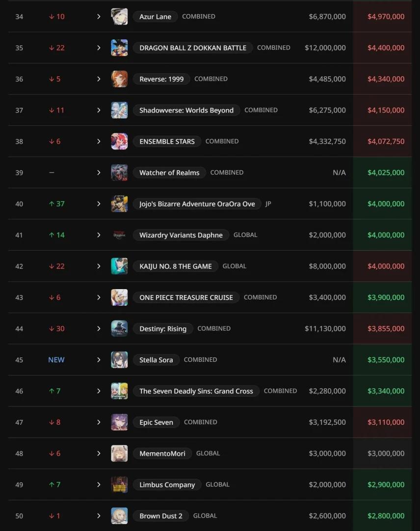 В самом низу списка находится BrownDust2 — $2,8 млн. Новенькой Kaiju №8 The Game тоже не повезло — игра принесла $4 млн в октябре, хотя в сентябре её доход составил $8 млн.