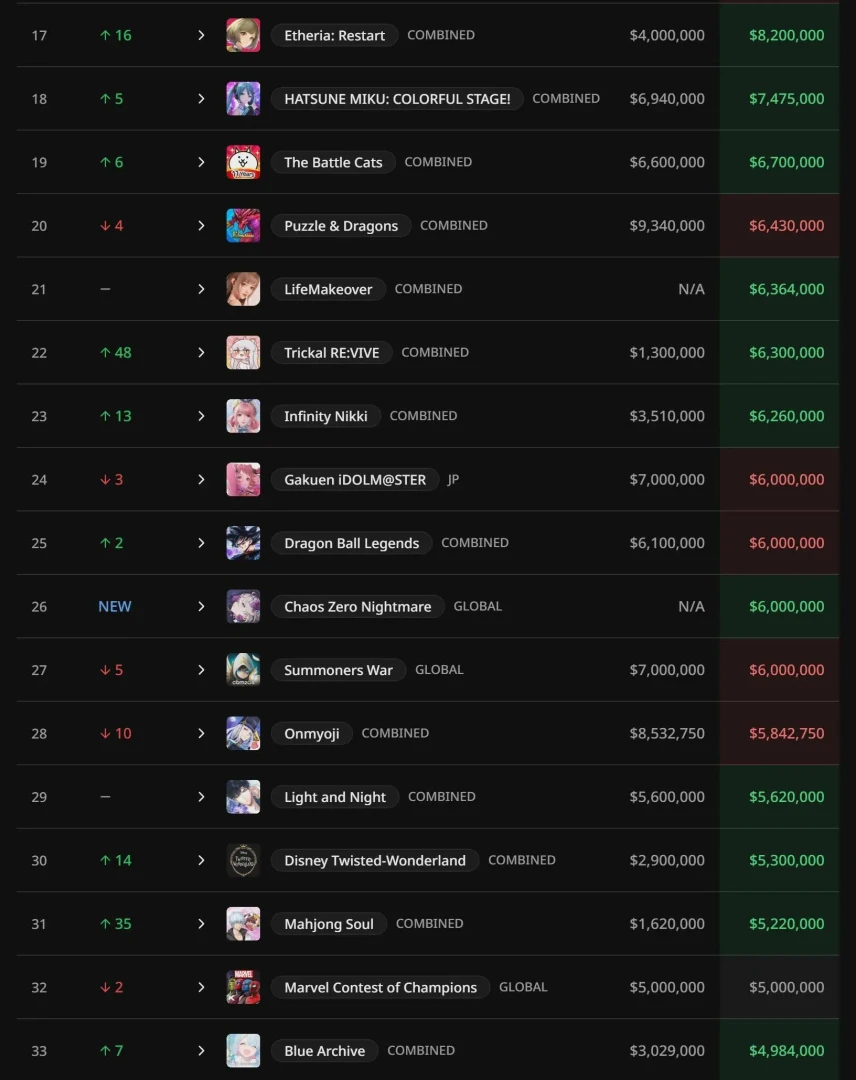 Destiny Rising тоже попала в этот топ, но результаты очень слабые — с $11,13 млн в сентябре доходы игры опустили до $3,85 млн. Гачи по типу Blue Archive, Azur Lane и Reverse 1999 показали более слабые результаты по сравнению с Marvel Contest of Champions.