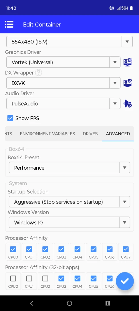 Отключение первых трёх или четырёх ядер в Winlator может повысить FPS в играх на DirectX 9 на 15 кадров и выше.