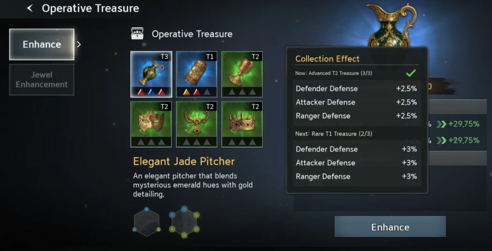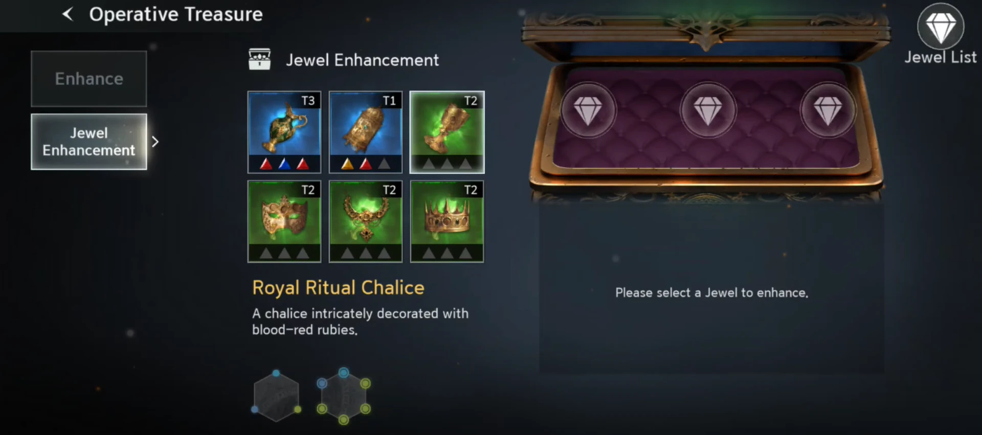 Когда ваш особняк достигает 25-го уровня, вы открываете доступ к драгоценностям: рубинам, сапфирам, бриллиантам и так далее. Они вставляются в пустые слоты артефактов, давая ещё больше бонусов. Более того, каждую драгоценность нужно отдельно улучшать. И чем больше ресурсов вы тратите, тем больше понадобится в следующие разы.