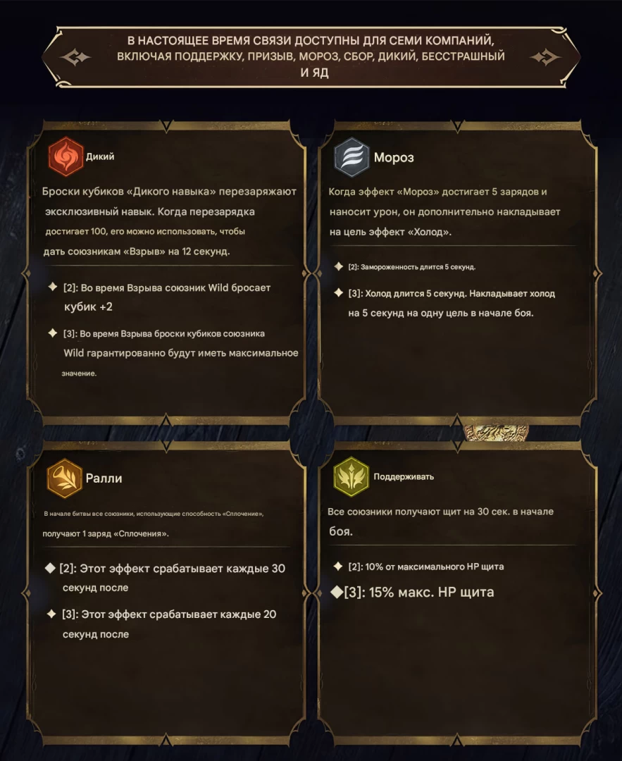 - Поддержка — даёт всем союзникам щит на 30 секунд в начале боя.
