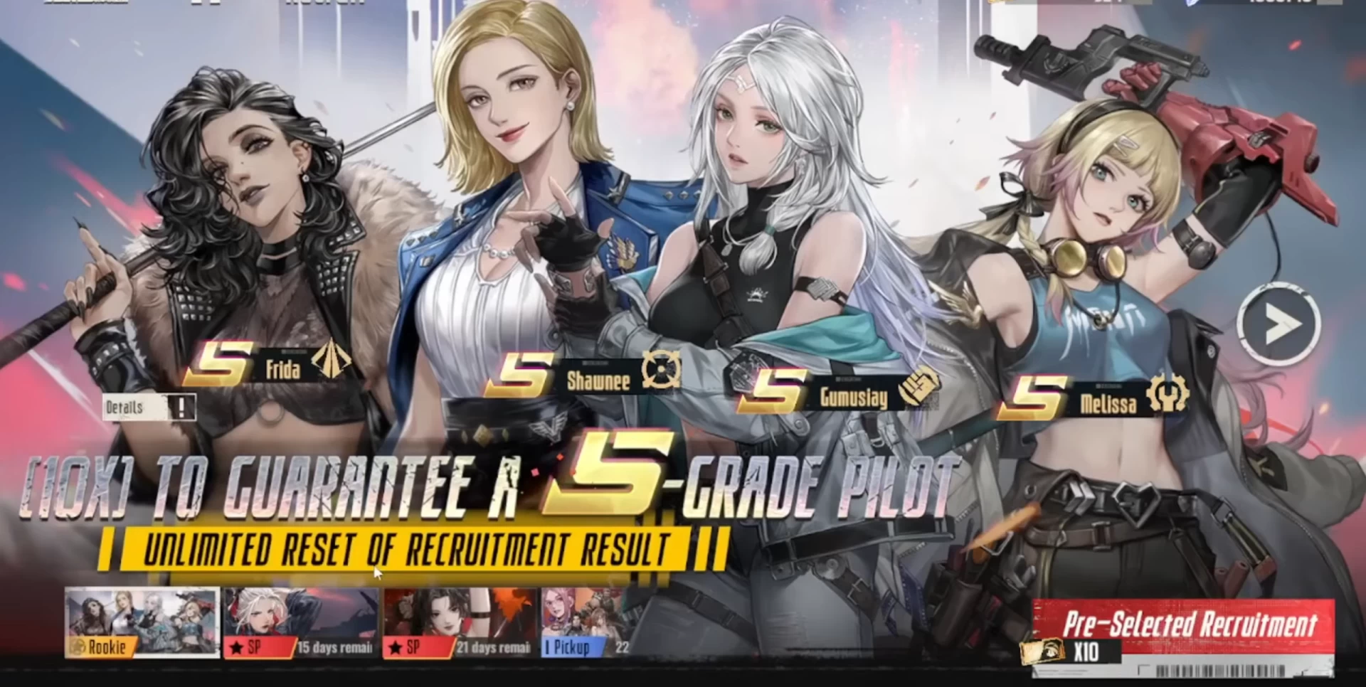 Чтобы открыть гача-баннеры в Mecharashi и награды новичков, нужно пройти обучение. Стоит отметить, что за каждые 10 круток вы получаете пилота S-ранга. В среднем, если собрать все награды, на старте можно получить 30+ круток. Если у пилота золотой задний фон, значит у него S-ранг. Огромный плюс баннеров с пилотами заключается в том, что вы можете много раз нажимать на кнопку «Repeat», если вам не понравился результат.