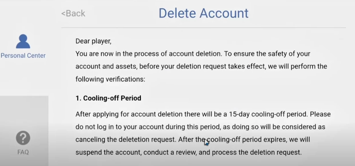 - Ознакомьтесь с правилами. Так, игрок может отменить удаление аккаунта, если он войдёт в него в течение 15 дней с момента подачи заявки.