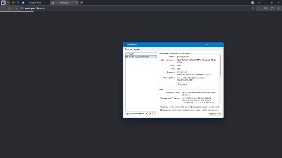 Гайд по ускорению YouTube и Discord с помощью WARP и AmneziaWG