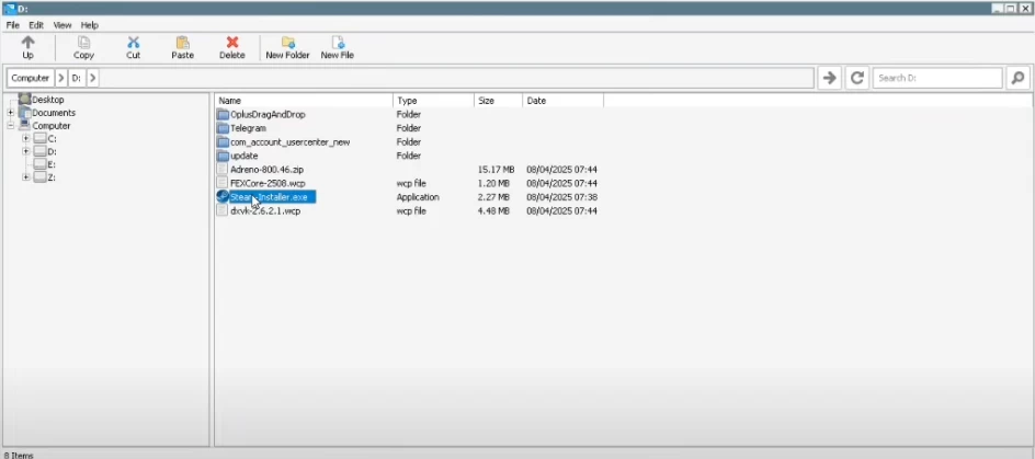 Откройте контейнер, найдите файл «Steam-Installer.exe» и запустите его, чтобы установить Steam.