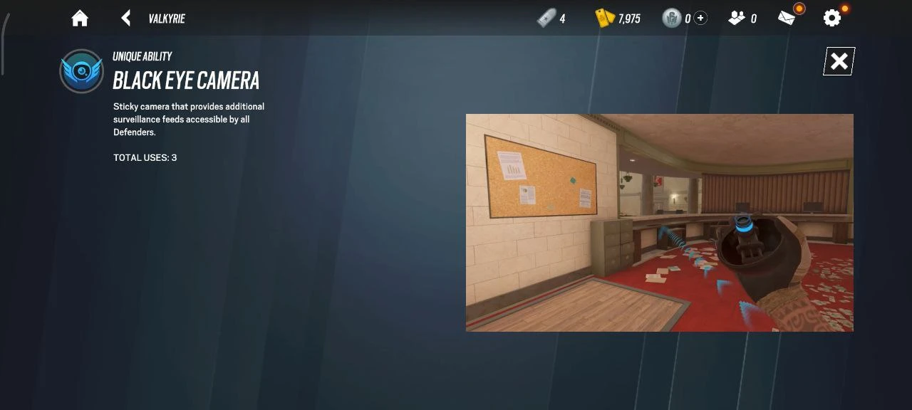 Ещё одна крутая фишка Валькирии — её круглые камеры, которые она может крепить в совершенно разных местах. Всего у оперативника есть 3 такие камеры. Их рекомендуется лепить в незаметных и высоких местах на точке, где противник ставит детонатор.
