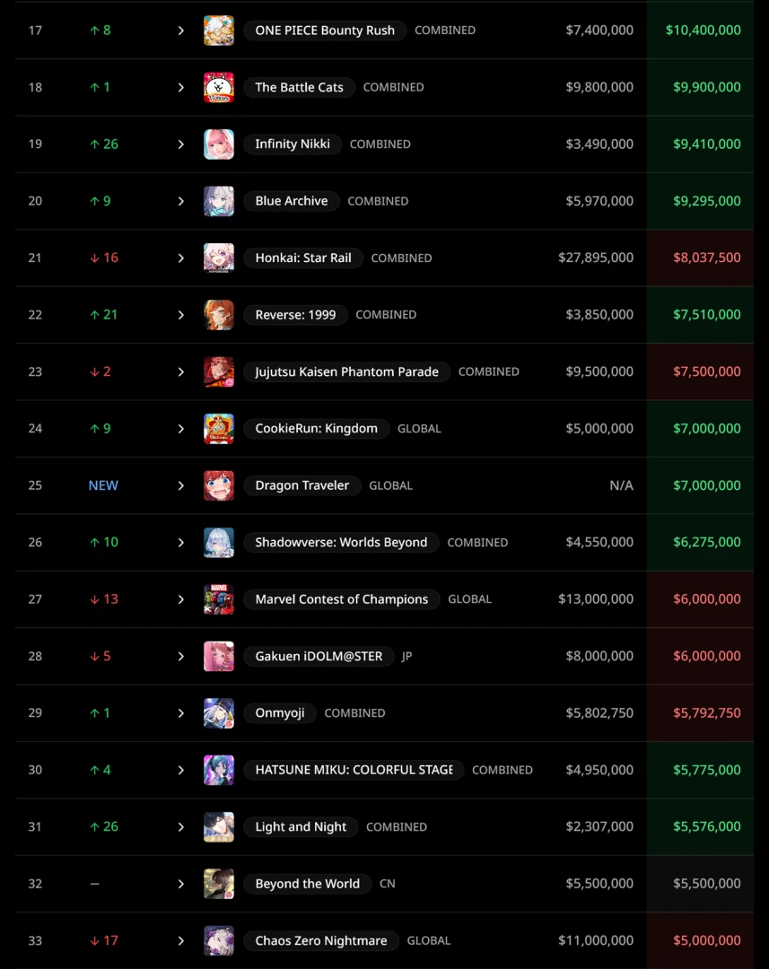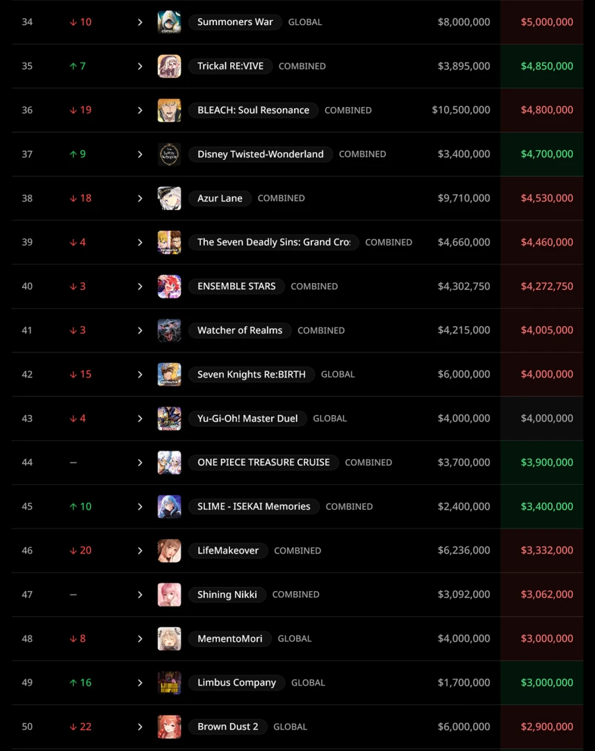 В конце списка оказалась Brown Dust 2 — несмотря на клубничный контент игра получила всего $2,9 млн. Более того, по сравнению с декабрём она опустилась сразу на 22 позиции. Её обогнала даже нишевая Limbus Company.