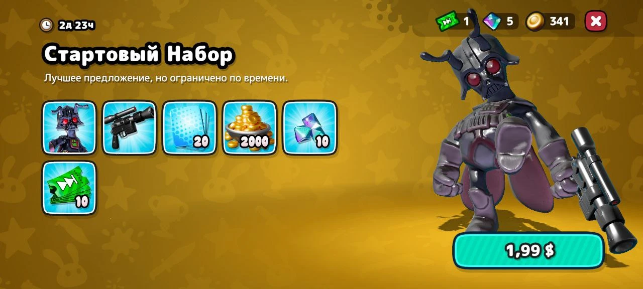 Из плюсов игры стоит отметить то, что в ней прямо указывается — играешь ты против бота или реального соперника. Но чтобы показывать стабильный результат, нужно или донатить, или смотреть много рекламы. Она используется для разных моментов: например, чтобы заработать фрагмент оружия.