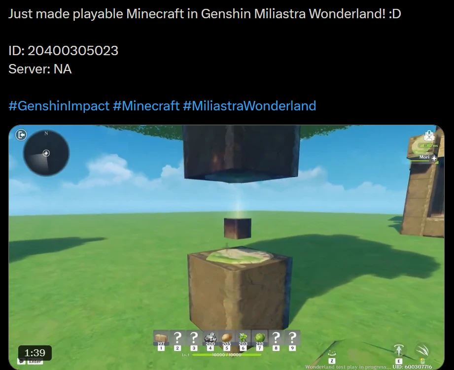 Пользователь X под ником «VoxelForest» опубликовал пост, в котором поделился бета-версией своего мода для Genshin Impact. По сути это копия Minecraft в «Геншине». Это стало возможно благодаря добавлению «Астрального предела» — UGC-платформы для создания новых модов и мини-игр с помощью ассетов и движка Genshin Impact. Попробовать бета-версию этого режима можно по ID 20400305023 на североамериканском сервере.