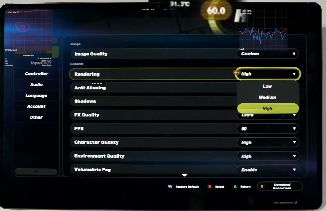 В Zenless Zone Zero также выставляем максимальный пресет. В битвах с большим количеством спецэффектов получаем просадки до 45 и 36 кадров даже при повторном входе на локацию (меньше нагрузки из-за шейдеров).