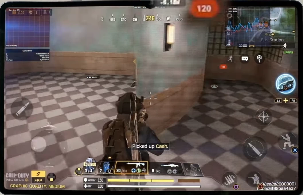 В Call of Duty Mobile на этом планшете нельзя выбрать максимальный пресет — ради лока на 120 кадров придётся пожертвовать графикой и выставить средний пресет. В режиме «королевская битва» получаем стабильные 120 FPS.