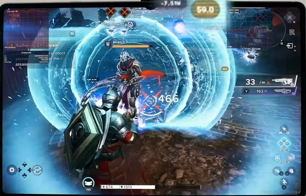 В Destiny Rising можно выставить ультра-графику, но не максимальную, если вы хотите поиграть в 60 FPS. В битвах с волнами врагов и спецэффектами получаем 59-61 кадр FPS.