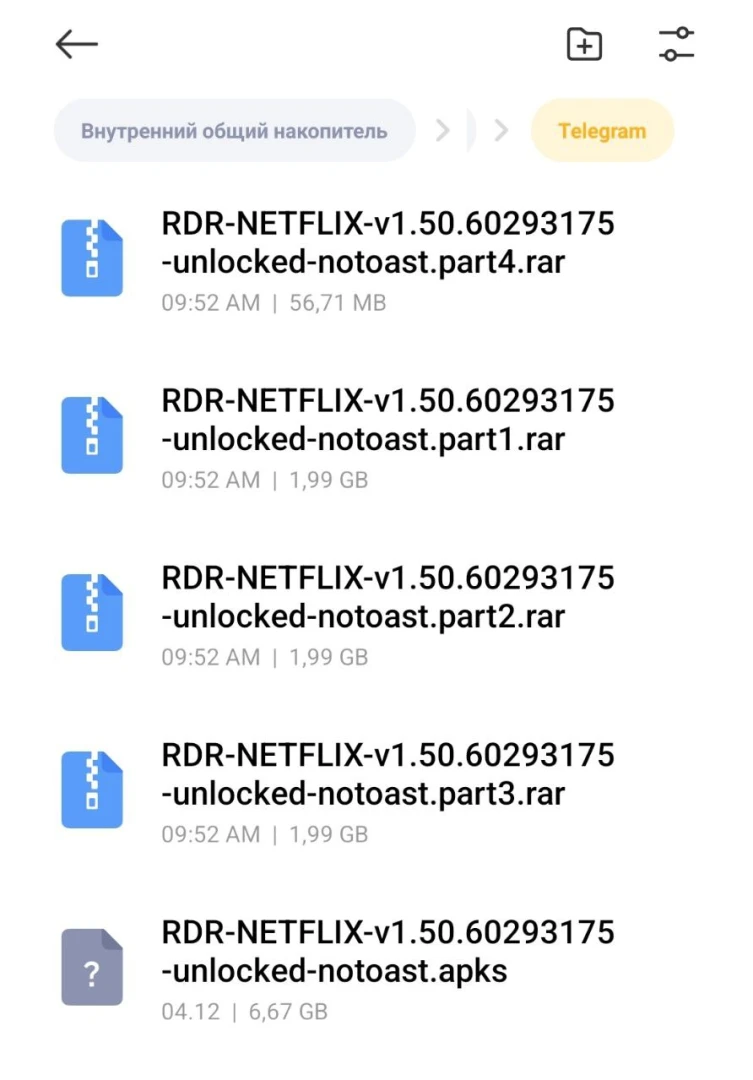 Далее распакуйте в эту же папку APKS-файл из архива «part1». Системный архиватор в POCO F5 выдавал ошибку, поэтому я использовал RAR.