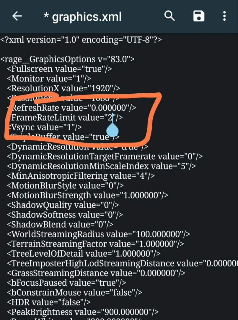 Внутри файла поменяйте значение «0» на «2» в строчке «FrameRateLimit value=». Остальные строчки не трогайте. Нажмите на кнопку дискеты для сохранения результата и выходите.