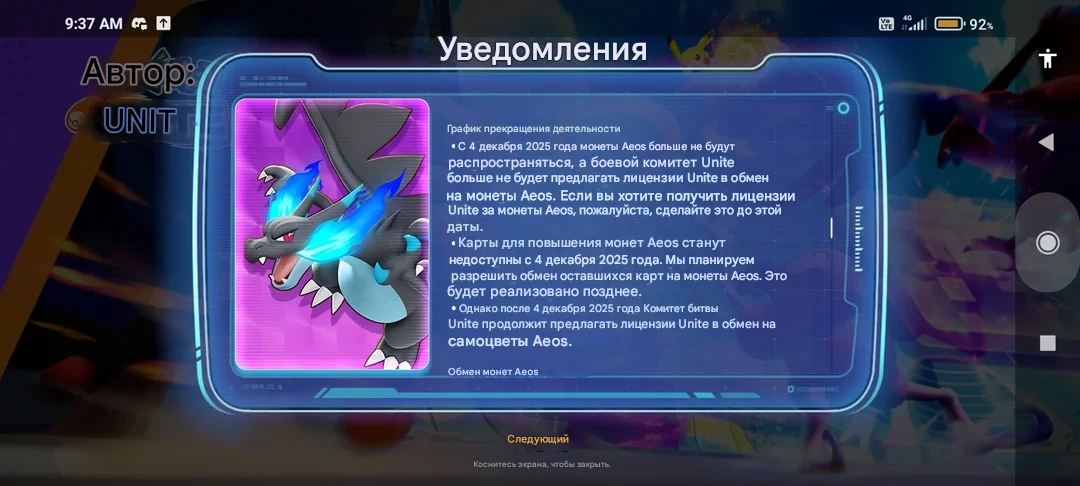 Игроки Pokemon Unite удивились удивились, когда увидели внутриигровое сообщение о том, что из игры уберут монеты Эйос. Это основная игровая валюта, которая станет недоступна начиная с 4-го декабря. После этого игроки не смогут обменивать данные монеты на лицензии Покемонов. Единственный шанс получить новые лицензии — покупать их за премиальную валюту, самоцветы Эйос.