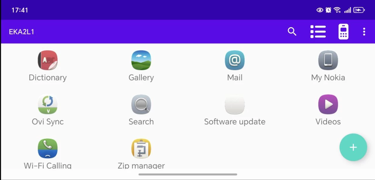 Если установка прошла успешно, вы должны увидеть разные приложения на главном экране EKA2L1. Нажмите на зелёный кружок, чтобы добавить Человека-паука.