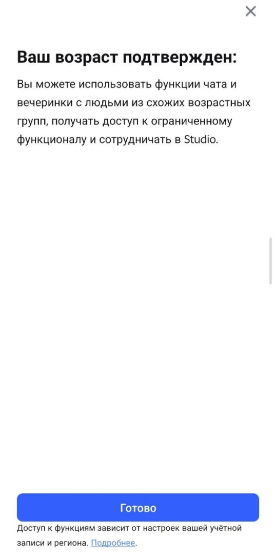 Если при регистрации профиля вы ввели свой возраст, то с высокой долей вероятности пройдёте проверку с первого раза. Причём вы можете выглядеть намного моложе своего биологического возраста — приложение, подобно кассирам в магазинах, не будет просить паспорт или говорить «Что-то ты молодо выглядишь».