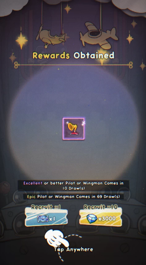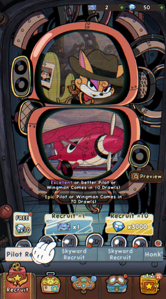 Чтобы максимально прокачать пилота и самолёт, нужно заполнить все 6 слотов экипировки. К сожалению, в гаче вы не можете выбрать, какую именно часть получить. Система гаранта может дать вам кольцо или перчатку вместо ботинок.