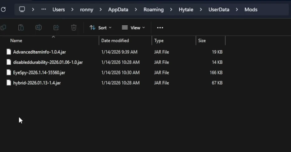 Расписал процесс установки модов для Hytale, а также показал, куда их нужно переместить и как активировать.