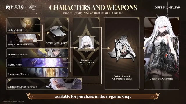 В Duet Night Abyss нужно фармить секретные письма, обменивать их на билеты испытаний, получать осколки и обменивать их на героев.