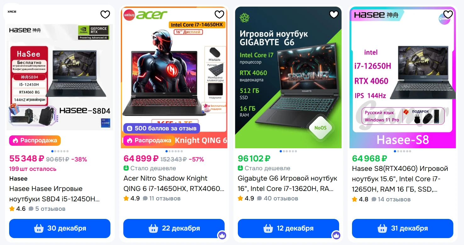 Более того, если сравнить цены на китайские ноутбуки, продающиеся на OZON, с видеочипами RTX 5060 и RTX 4060, сильной разницы между ними нет — все продаются до 100 000 рублей, что является «потолком» для многих родителей и геймеров при выборе устройства.