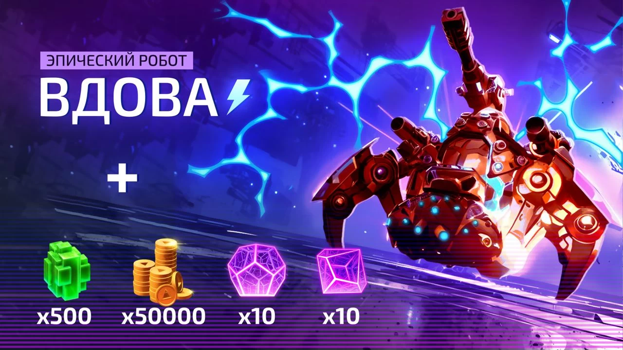 Награда за участие в конкурсе — мега-промокод на получение эпического робота «Вдовы», 50 000 золота и материалов прокачки. Награду вы получите в мессенджере на нашем сайте.