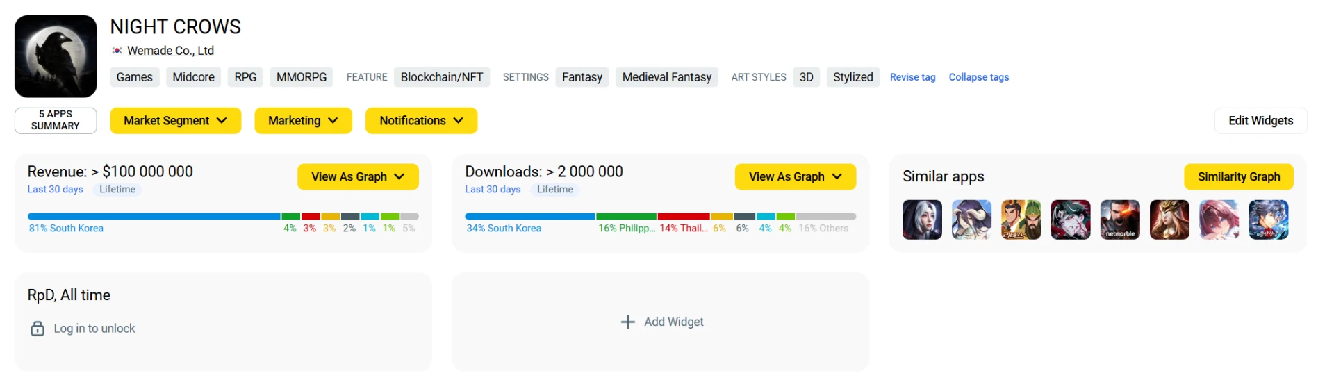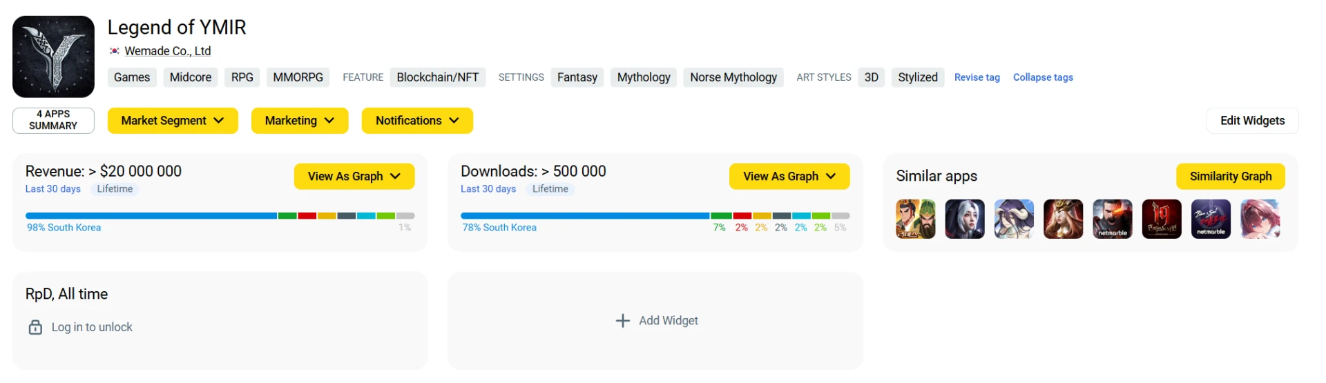 Если посмотреть на доходы за всё время существования Legend of YMIR, то с конца февраля 2025 года почти одна корейская версия принесла более $20 млн — 98% доходов приходится на Южную Корею.