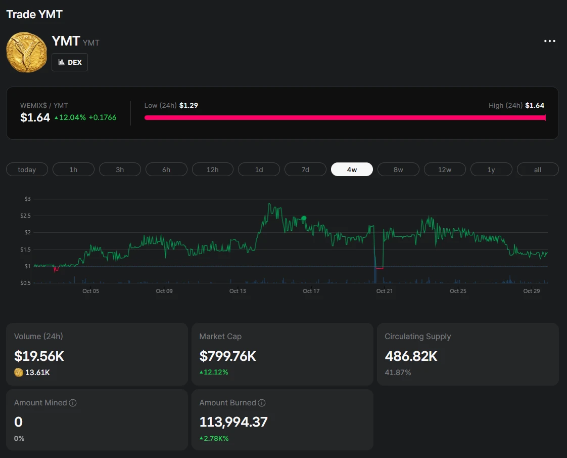 Что касается монеты YMT, то она упала в цене с глобального релиза. В один момент её цена составляла $2,32, но потом она просела до $1,64. Тем не менее, капитализация рынка Legend of YMIR достигла $799 763, увеличившись на 12,12%. Также возросло количество сжигаемых монет YMT, благодаря чему внутриигровой рынок не будет перенасыщаться.